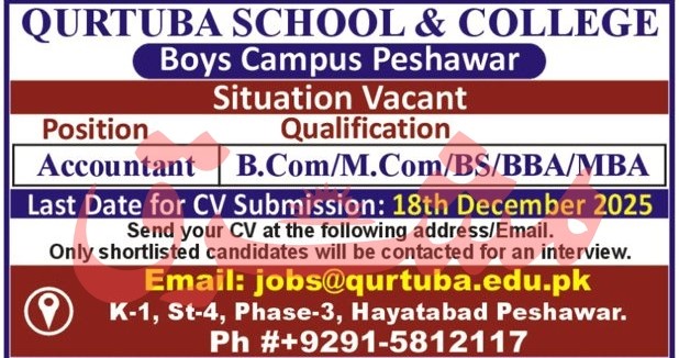 Candidates, if you are seeking Qurtuba School and College Jobs 2025 In Peshawar, yes. Then it would help if you tried to complete this Qurtuba School and College Jobs because here you can easily apply for this vacancy: Accountant.