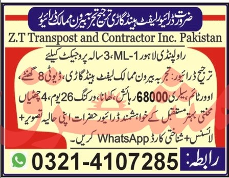 Candidates, if you are seeking Z.T. Transport and Contractor Inc Pakistan Jobs 2025, Apply Now yes. Then it would help if you tried to complete this Z.T. Transport and Contractor Inc. Pakistan Jobs because here you can easily apply for this vacancy: Driver.